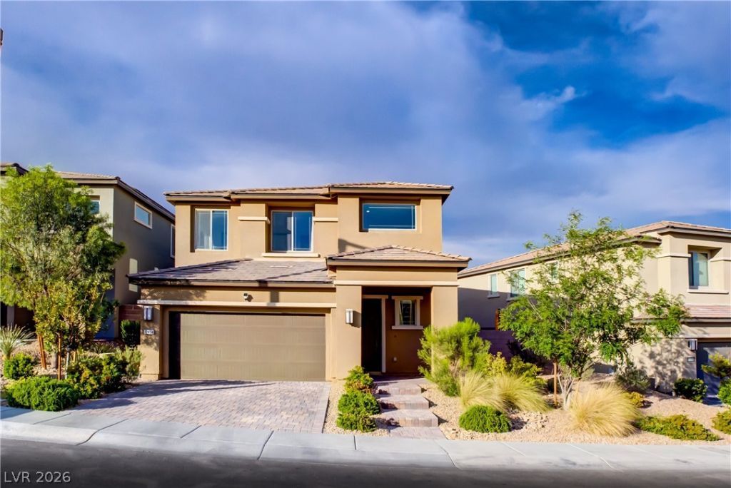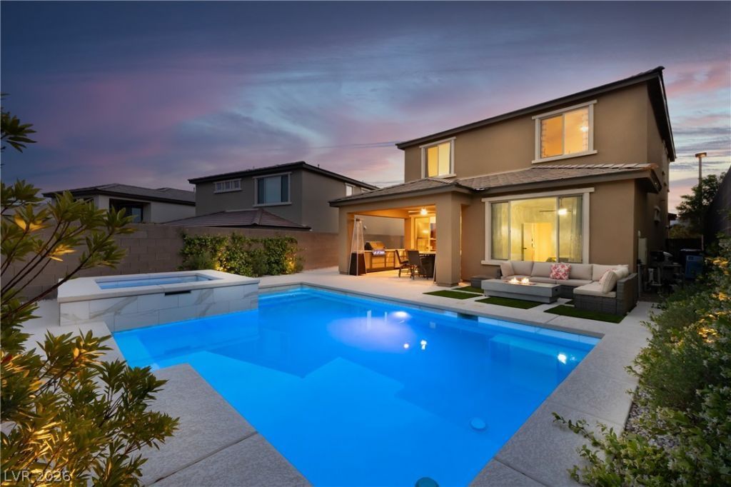 Location, location. This move-in ready home is located in the gated Starling Community adjacent to the Red Rock Mountain area in Summerlin. It offers an open floor plan with a spacious kitchen featuring stainless steel appliances. NEW hardware has been installed throughout the entire home, NEW vanities and sinks in aloof the bathrooms and laundry room, NEW tile in the living room, NEW Carpet on the stairs and in the primary bedroom located on the main level. Head upstairs to a large loft with mountain views. Each bedroom has a walk-in closet and a ceiling fan. In the backyard, step out to a covered patio equipped with a Napoleon outdoor kitchen with stainless steel cabinets featuring a semi-built-in natural gas barbecue, an outdoor fridge and granite countertops. Just steps away are a stunning oasis, a sparkling heated pool and raised spa, and a large seating area with a built-in natural gas fire pit. This home is a must see!!! Call or text for an appointment.
